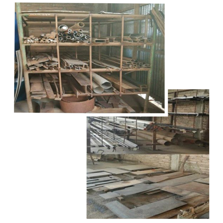 Todos os materiais que ainda podem ser usados como aproveitamento. Entre eles, chapas, tubos, barras, ferramentas de corte em aço rápido e metal duro. Incluindo ferrosos e não ferrosos.